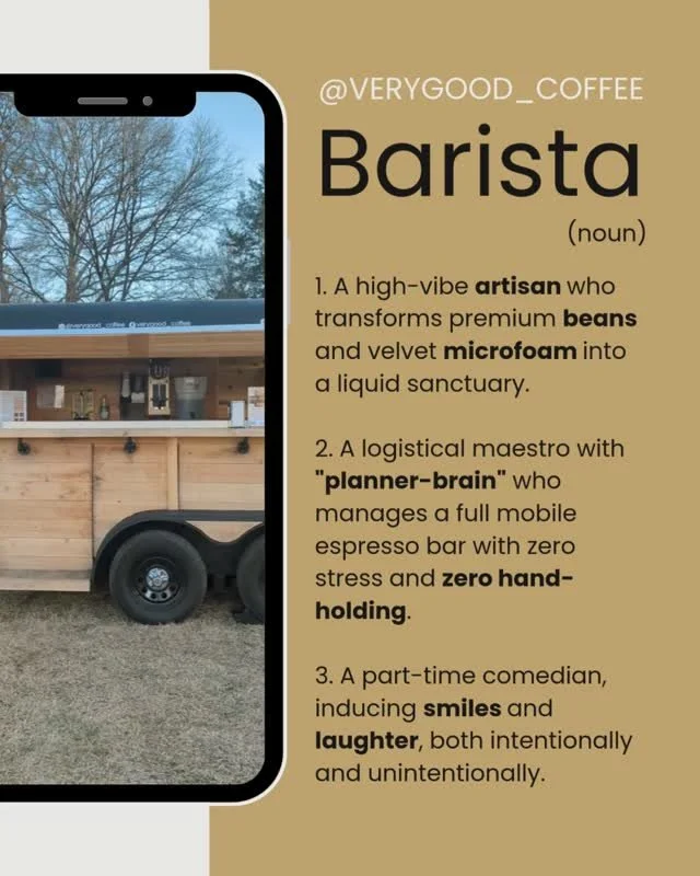 Delicious coffee, stinking cute trailer, and amazing service - thanks to an amazing small business owner that is behind it all. Very Good Coffee lives up to its name, and would be the perfect addition to any event.